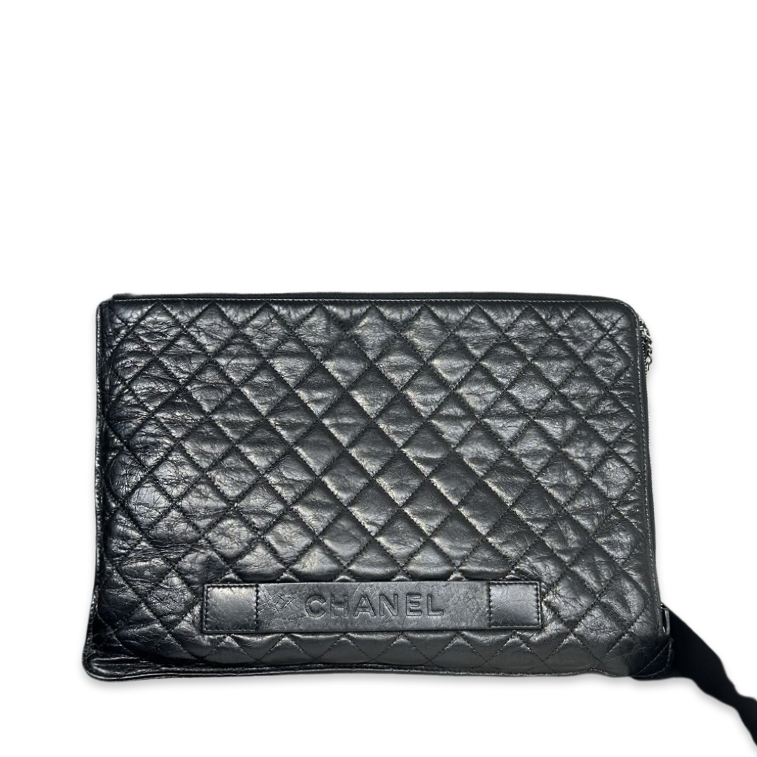 Chanel Black Leather Large Clutches Calfskin Pouch